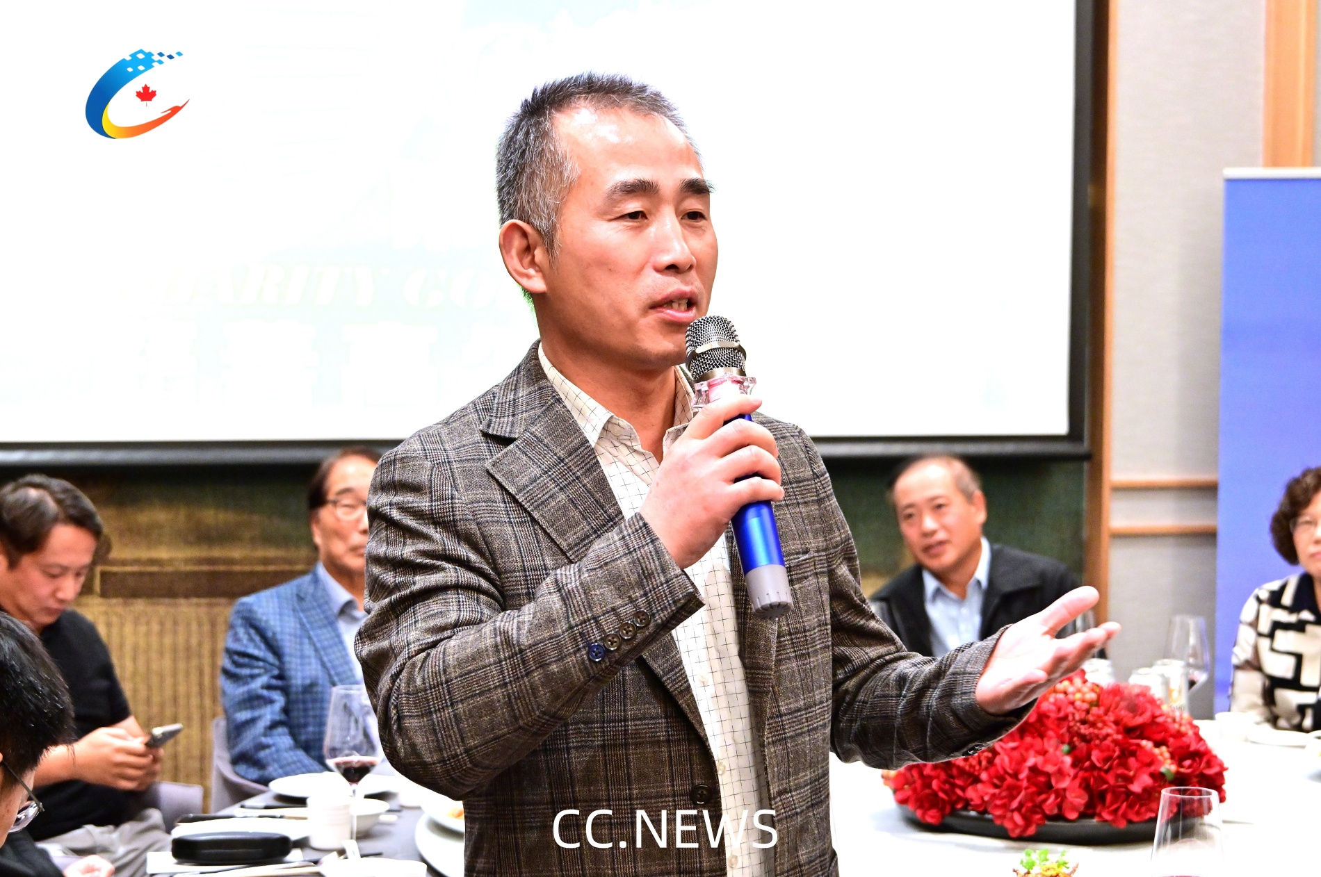 会上,球赛晚宴赞助商Longwater长水发展有限公司杨总对本届高球赛也给予了大力支持,钻石赞助商三洋木业(橱柜)集团Chris Yu 登台发言,表达了对本次慈善赛事的全力支持,同时代表奔驰集团(加拿大)为球赛一杆进洞奖赞助一辆奔驰汽车,而大赛球车赞助商王扬律师也同时表达了会一如既往的支持商会慈善高球赛,随后黄金赞助商代表New Capital新资本金融杨晨、95地产开发代表Simon Wang,背景墙Cheelo公司的Roger,鲜花赞助24 flowers 代表Dana,一杆进洞赞助商 (2万加元) 代表Martin Ding,黄金赞助商Z-Square 代表Joyce Liu,以及商会荣誉会长江邦固律师也分别发表致辞。赛事组委会负责人、副会长 Samuel Wang 详细介绍了活动的场地与规则,并对本届球赛顾问,商会理事Raymond Xu及Lawrence Ding表示了感谢。商会监事长赵东山,副会长们和部分参会的商会理事们也先后发言,共同为赛事助力。