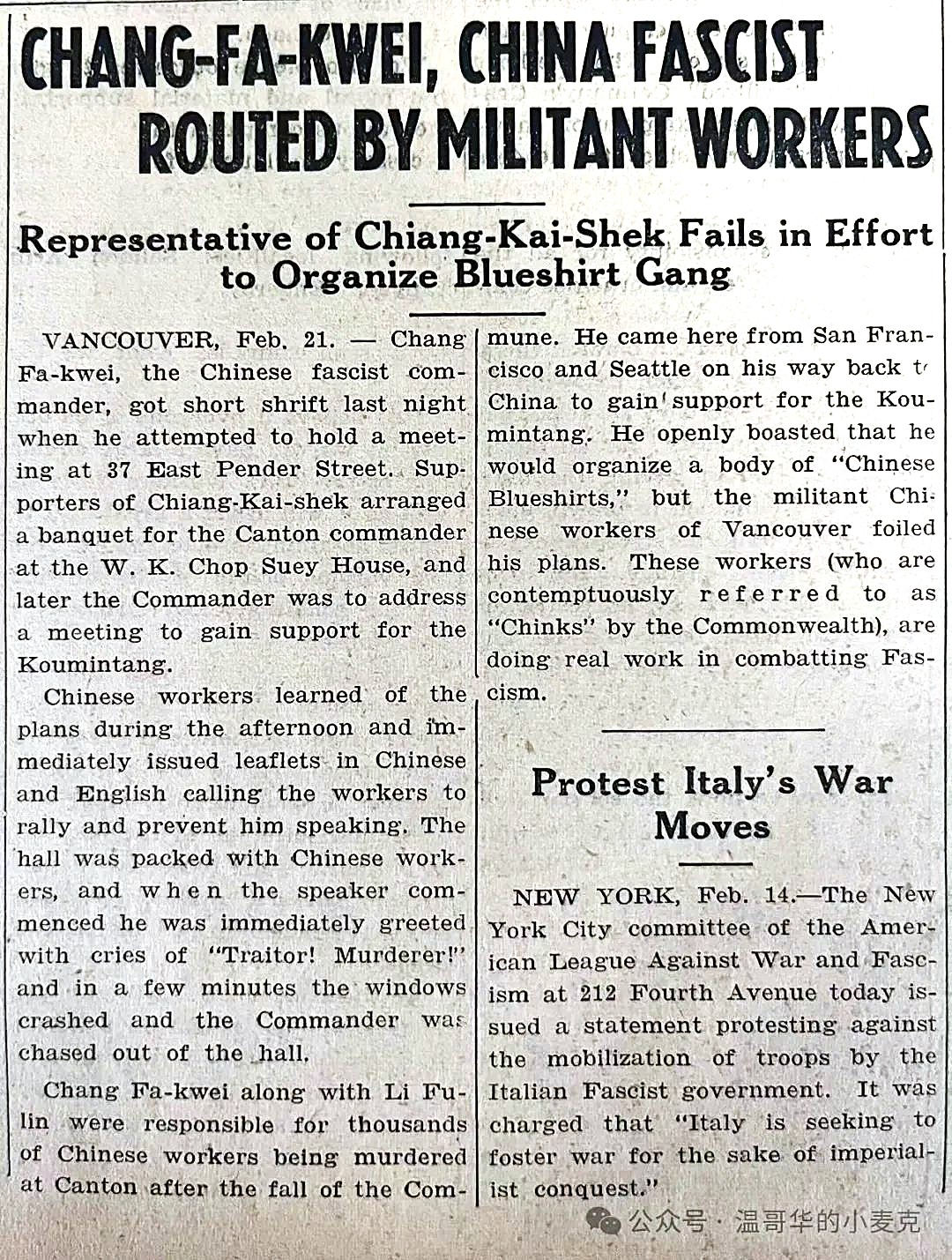 温哥华的小麦克:他们的活动是双线的,一方面在加拿大为华人权益斗争,另一方面心系祖国,支持中国革命。
