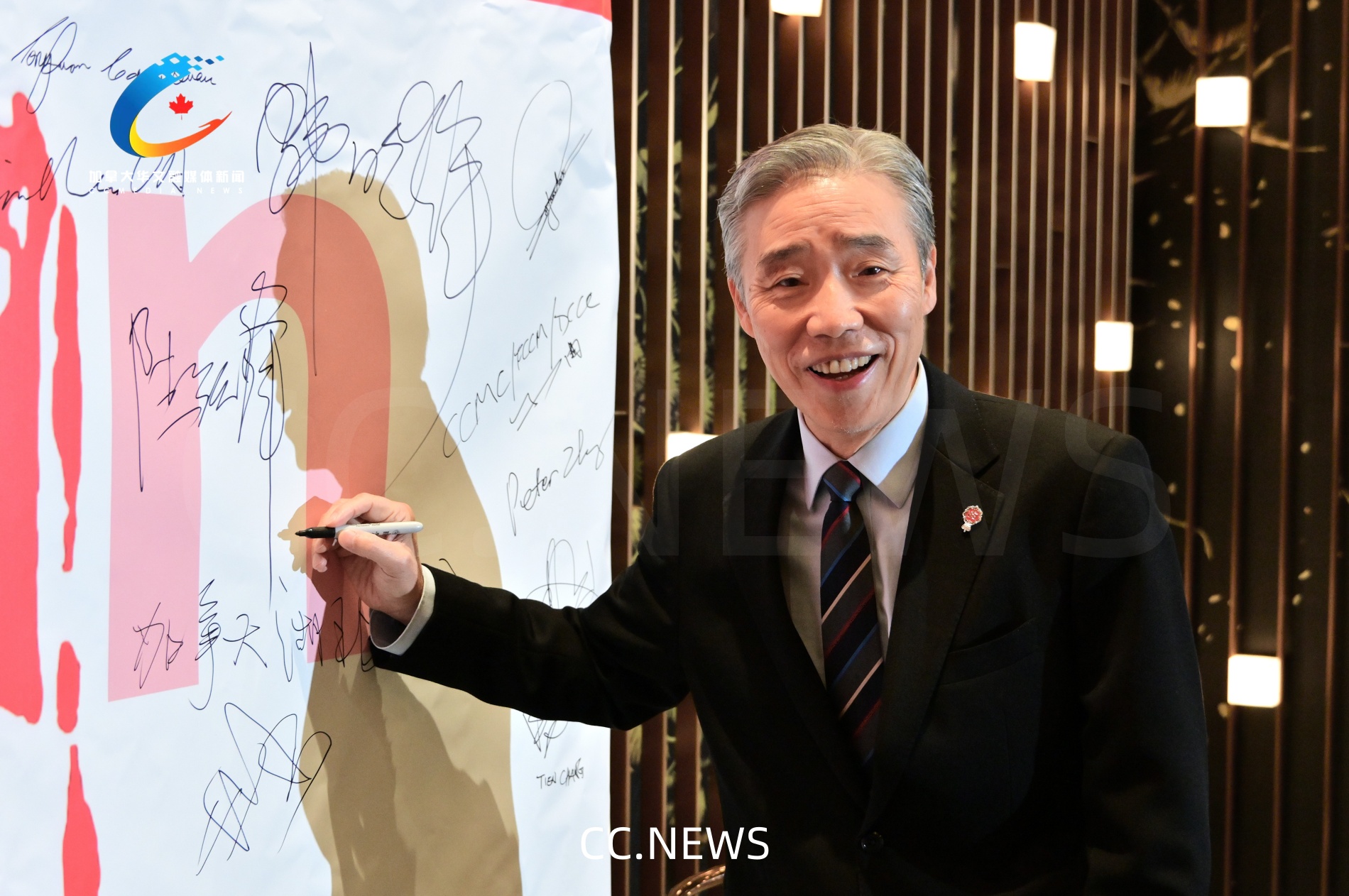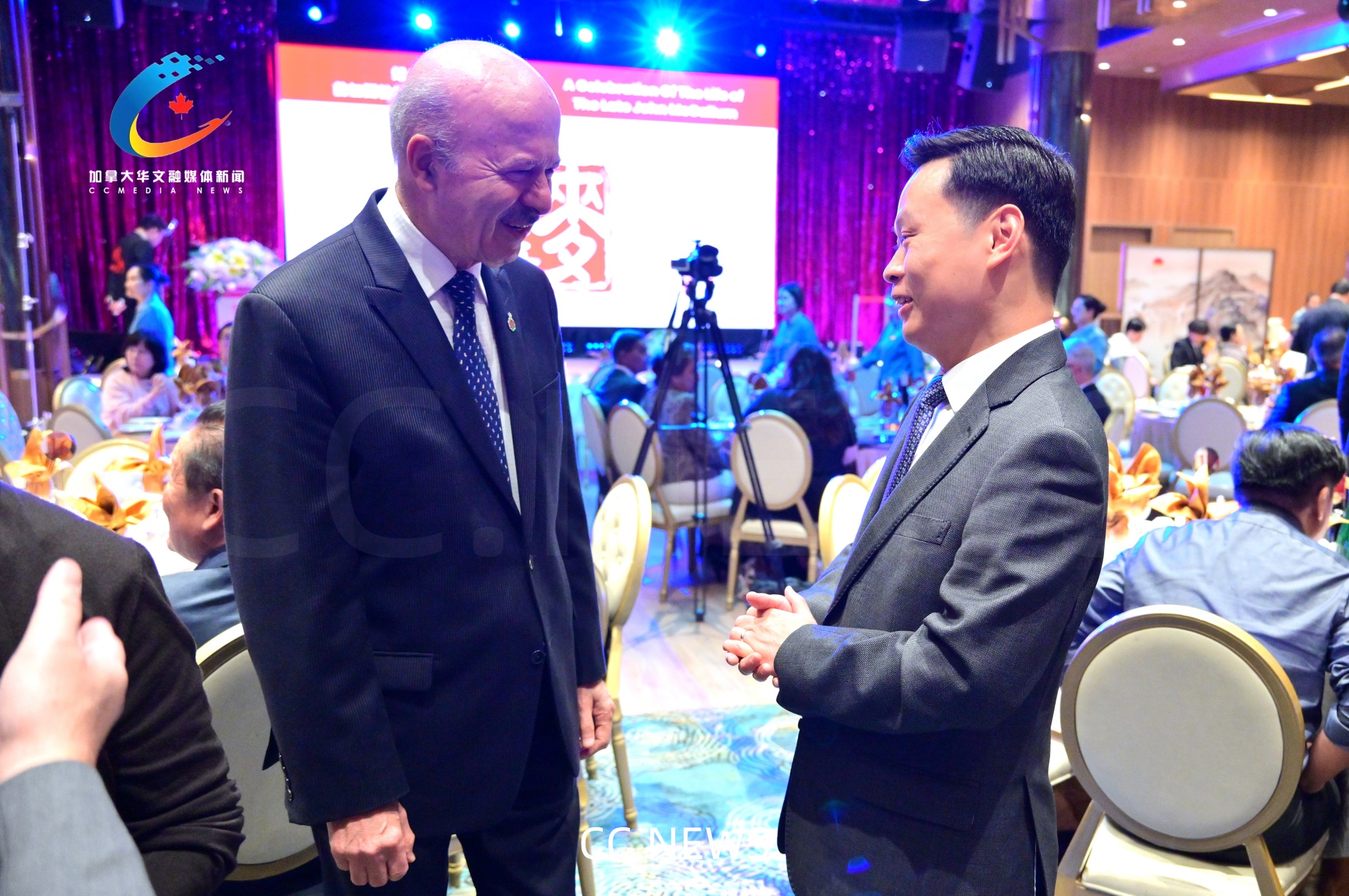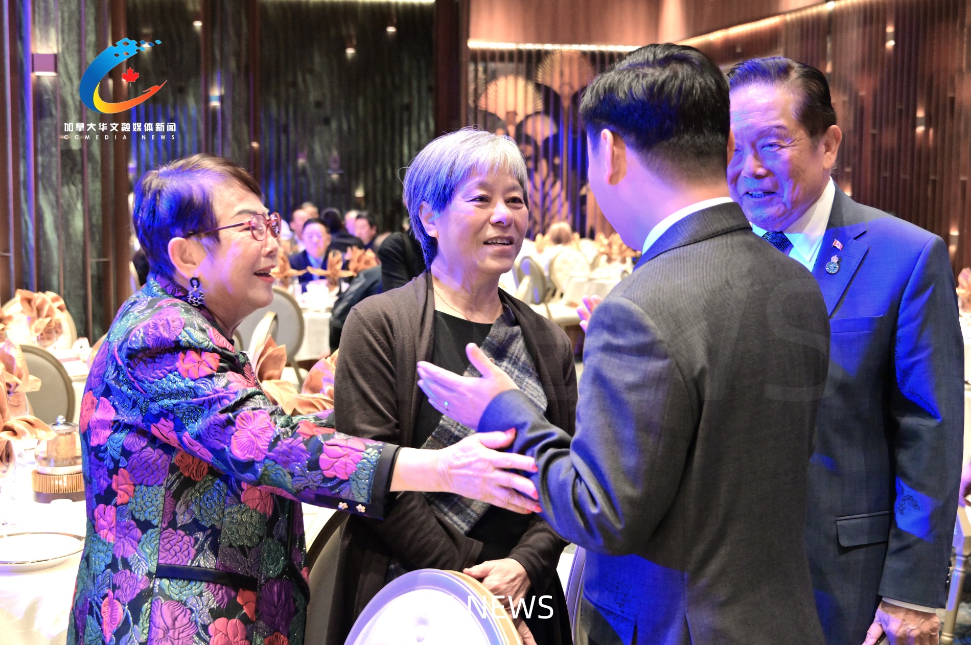陈国治副市长、前参议员胡子修、中国驻多伦多代总领事程洪波、前国会议员马万里等来宾登台发言,万锦市长薛家平通过视频致敬