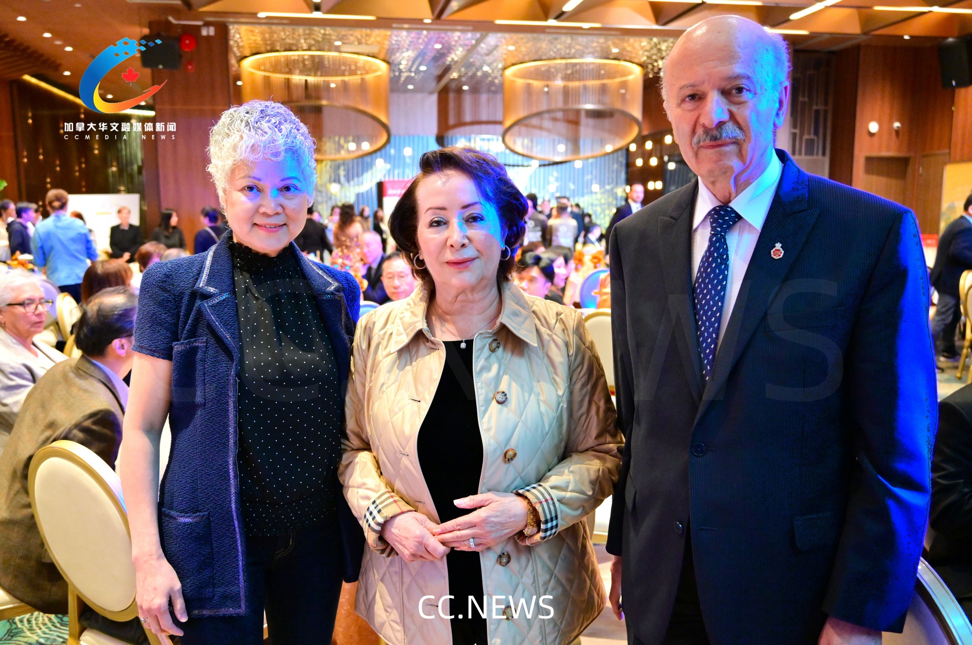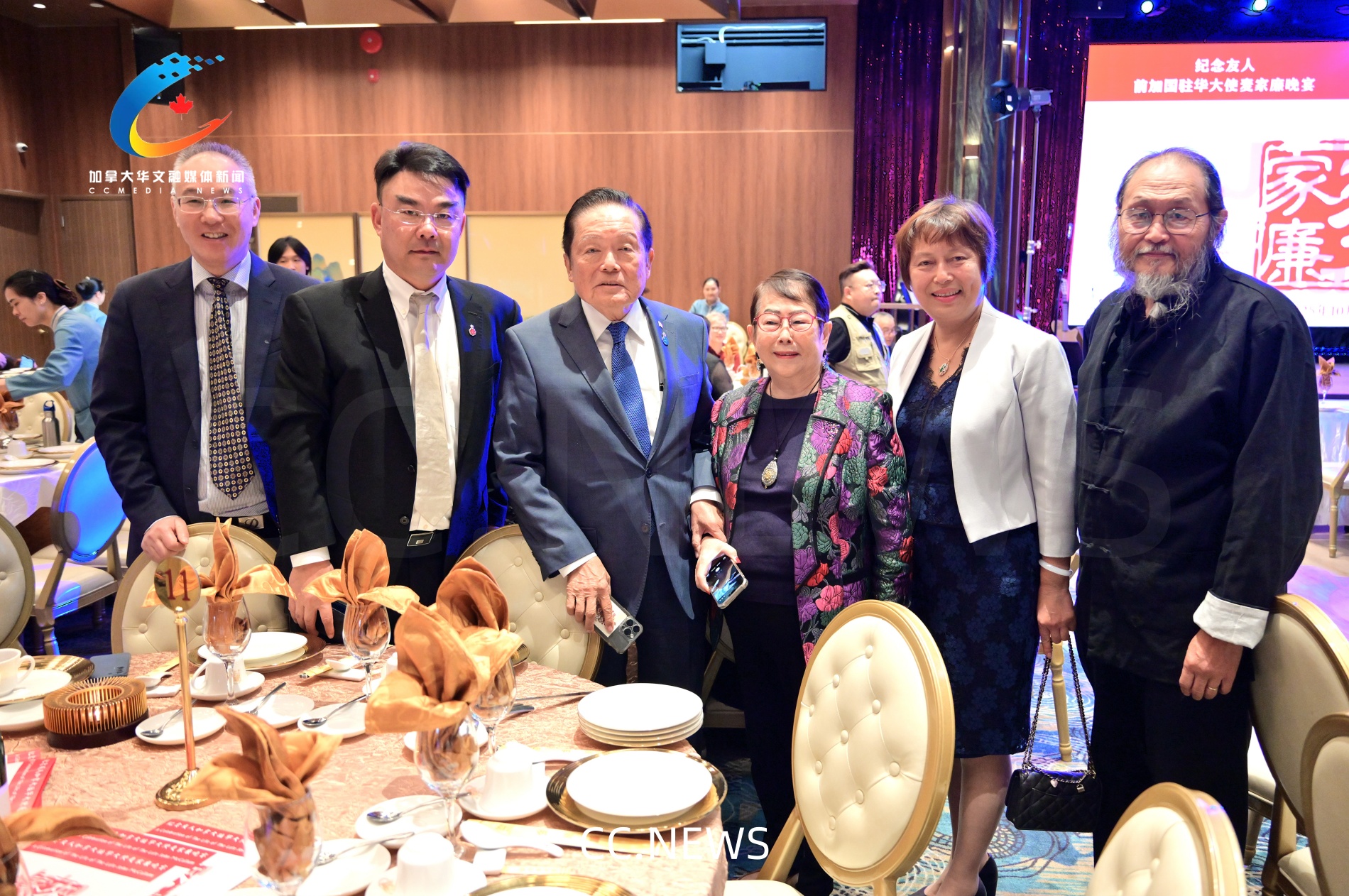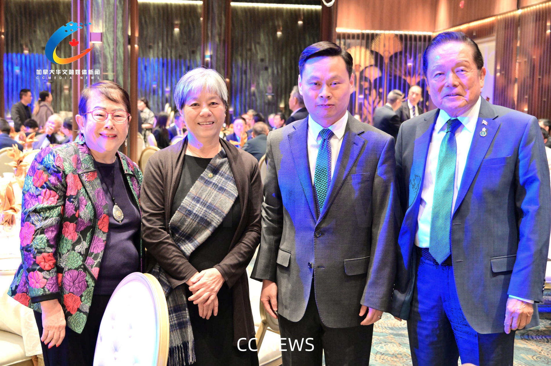 图为联邦前参议员胡子修和夫人、中国驻多伦多代总领事程洪波与麦家廉夫人Nancy McCallum女士合影