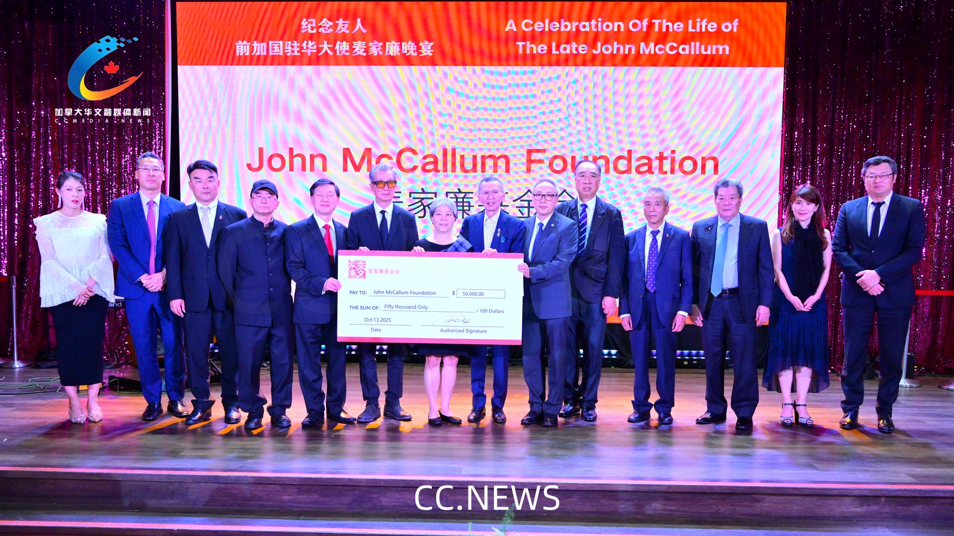 追思会主办方宣布:现场共筹得五万加元善款,由共同主席代表交予麦家廉夫人Nancy McCallum,设立“麦家廉专项基金”,支持教育与社区项目,传承麦家廉先生的精神
