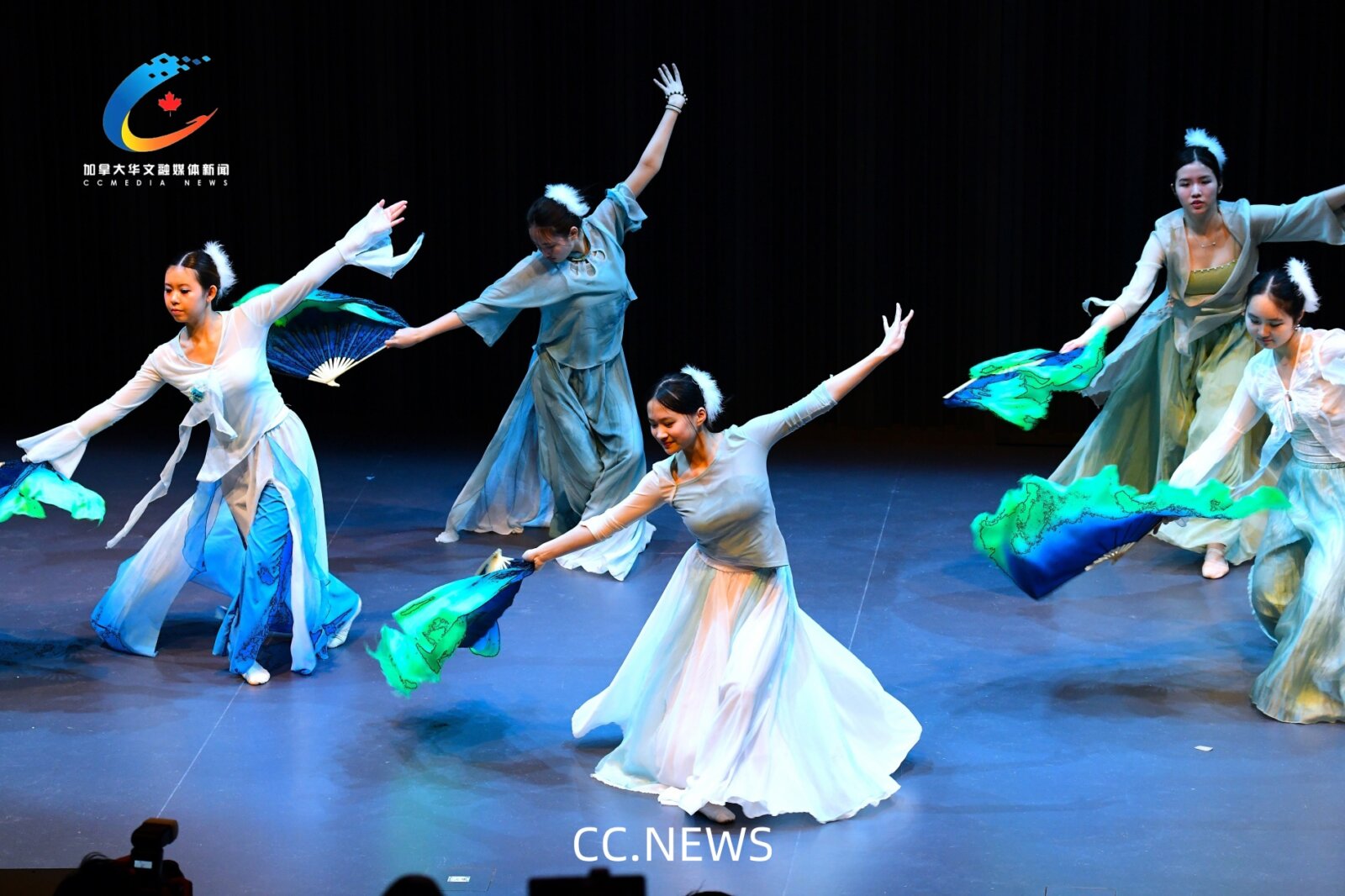 柔美的舞姿搭配典雅的中国传统服饰,舞者们用灵动的动作演绎《千里江山图》的壮阔与诗意,将古典书画的美学融入舞蹈之中,婀娜多姿的身段展现出华裔女性独有的温婉与魅力,让现场观众领略到中国古典舞的极致美感。
